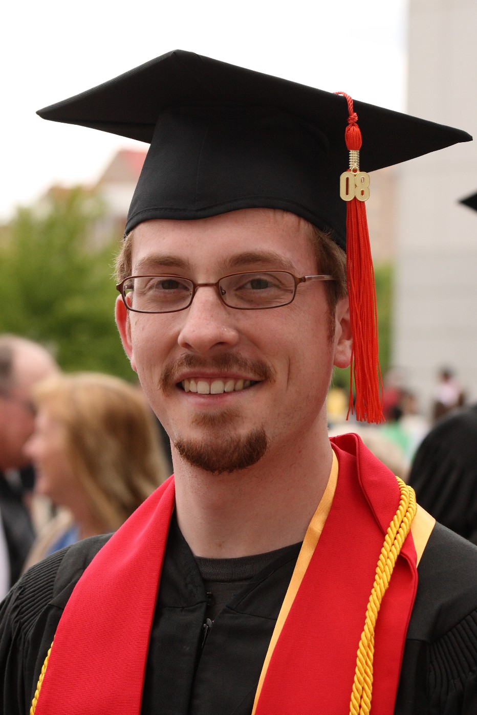 Actually, I’m pretty proud of that: the red stole is the “Distinguished Scholar Award”, which is given to the top 20% of each class in GPA. I hit that category pretty well, having managed to keep a 4.0 all the way through college! - Then since the red stole with orange tassel didn’t cover enough of the spectrum, I further added some yellow and gold in the form of an Eta Kappa Nu honor stole & cords: